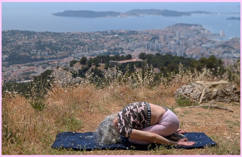 0:00-1:30 : We start sitting on our knees and go to the Child's Pose in its version with arms alongside the body, palms facing the sky. If you are just starting out, you should now go and study this position on its detailed sheet (View). The idea is to only give in the series indications complementary to those of the classic positions that we will learn to master gradually. So when you master the Child's Pose, you come back to continue here - I assure you this first position is childish!