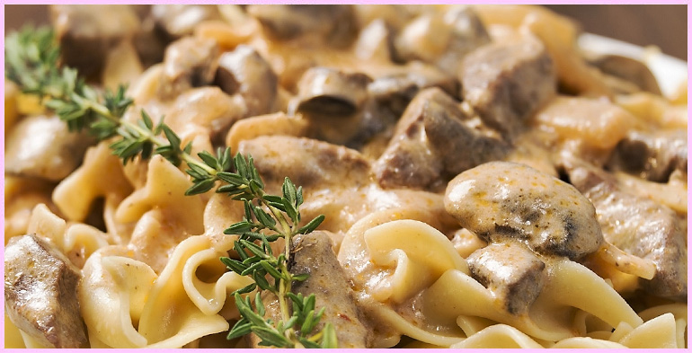 Le bœuf Stroganoff (ou Stroganov mais surement pas strogOnoff !!!) est une recette traditionnelle de la cuisine russe : un ragoût de viande de bœuf mariné, sauté, puis braisé avec une sauce à la crème, moutarde, paprika, oignons et champignons. Il existe plusieurs explications au nom de la recette mais la plus probable est liée au nom d'un membre de la famille Stroganoff (noblesse russe), le comte adjudant-général de l'Empire russe Pavel Alexandrovitch Stroganov (1774-1817) dont le chef cuisinier français André Dupont avait réalisé une recette de fricassée de bœuf en lui donnant le nom de son maître.