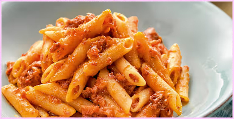 Pasta : 200 grams. I recommend Penne (tube-shaped with beveled ends) or Rigatoni (ribbed tubes a little larger than Penne with straight-cut ends), both quite similar to traditional Tuscan Chifferi.
