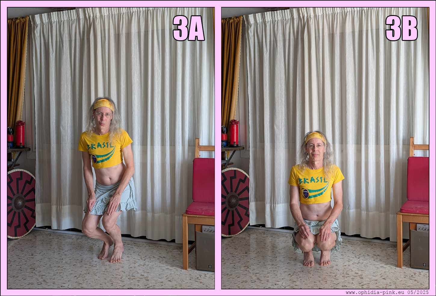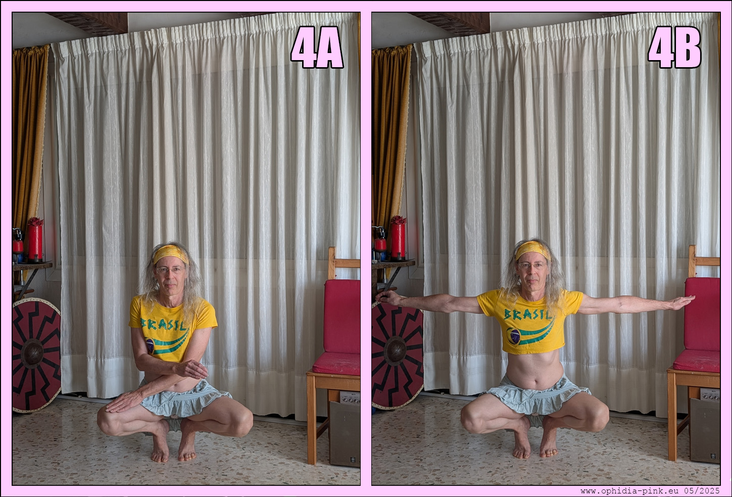 Position 3 vers 4 en deux temps : On va écarter grand les cuisses avec ses mains. (4A)