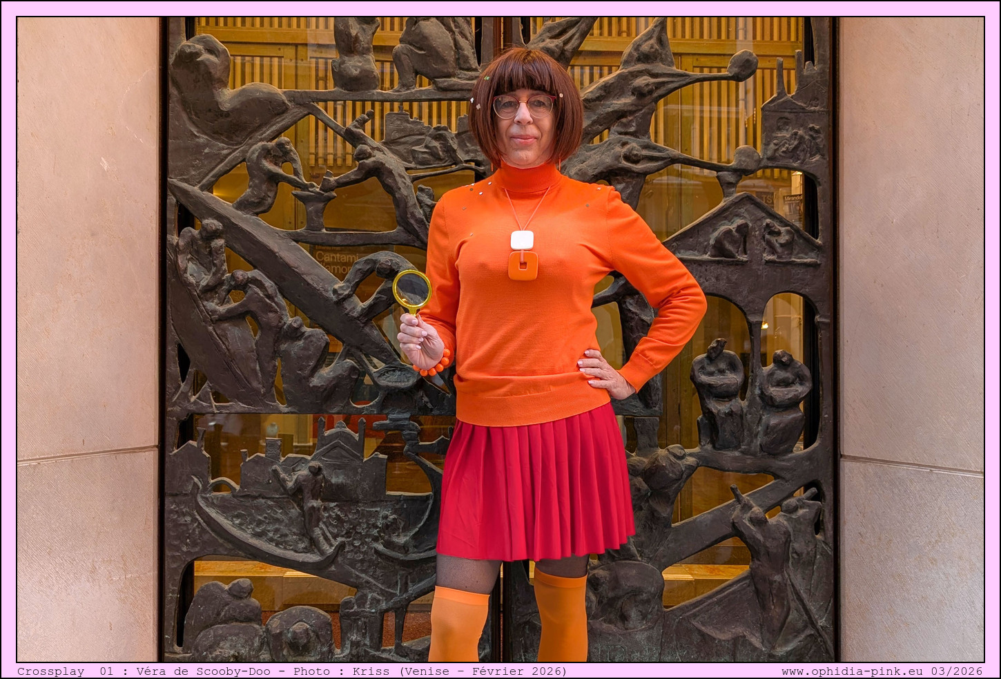 Vera is instantly recognizable with her brown bob (practical, not glamorous), her orange turtleneck sweater, her red skirt, and her orange knee-high socks. Her design is simple, yet iconic. Her glasses (which she's always losing—a recurring gag in the series) are very important. The famous "I can't see anything without my glasses" is almost too perfect: it's literally a visual metaphor meaning she needs an intellectual framework to "see" the world correctly (without glasses, she loses control; with them, she regains mastery, clarity, and rationality).