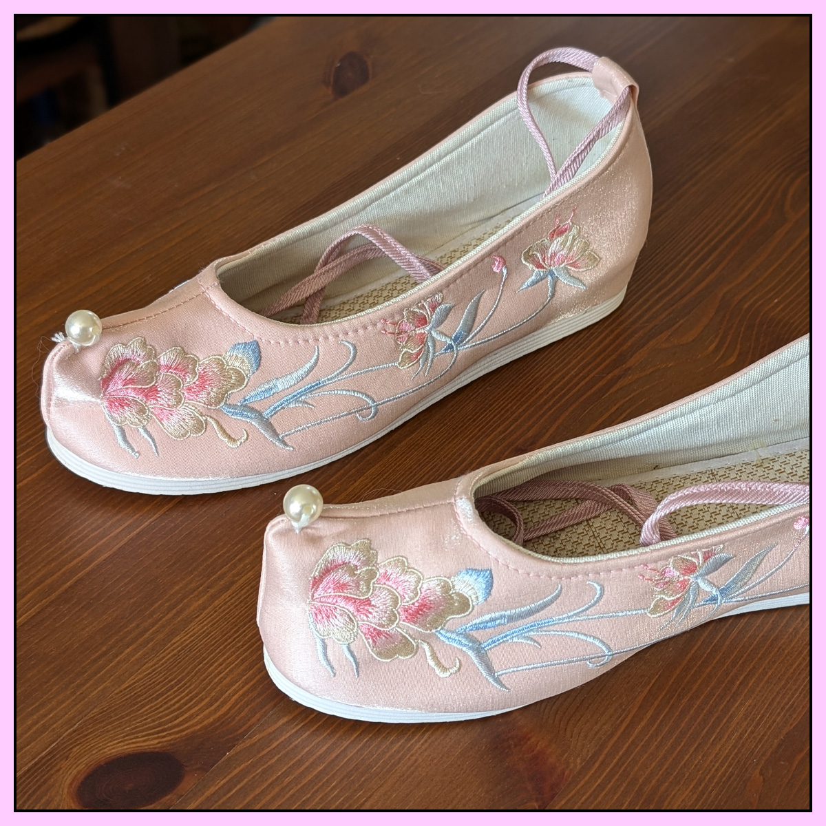 THEME : Hanfu clothing has historical significance as the traditional attire of the Han Chinese, symbolizing cultural heritage, social hierarchy, and ethical values over the millennia. Literally, "Hanfu" means "clothing of the Han" in Chinese. The Han are the "historical" Chinese people. The name dates back to the Han Dynasty (206 BC to 220 AD). The Han ethnic group is the largest ethnic group in China, constituting approximately 92% of the Chinese population at the beginning of the 21st century. Hanfu isn't just about aesthetics. Its style, colors, and design elements were often indicative of social status and rank in ancient times. It's important to understand that it wasn't a one-size-fits-all style; it could vary considerably with each emperor, with women's fashion all about pleasing the emperor! HAIRDRESSING: Han people have long hair. Men wear it in a bun, while women often wear it in a bun and two long (sometimes very long) pigtails or braids. Han hairstyles are also characterized by elaborate hairpins among important people. All these accessories can be found today on the most popular Chinese websites... as well as wigs that allow you to achieve one of the very complex classic hairstyles without spending an hour trying something wrong! DRESS: My dress is made up of several elements, a small strappy top and a long skirt over which we put a first piece of clothing with very wide sleeves then a second, translucent and embroidered which has the same shape and comes on top. Finally, a belt comes to encircle the waist and keep everything well in place. This composition is characteristic of the Ming period. In the photo you can see that I am wearing a fur-lined winter cape, at night in Venice in February it is appreciable! SHOES: I have on my feet a very pretty pair of traditional Hanfu shoes that I chose so that the colors would harmonize best with those of the dress and its embroidery. |