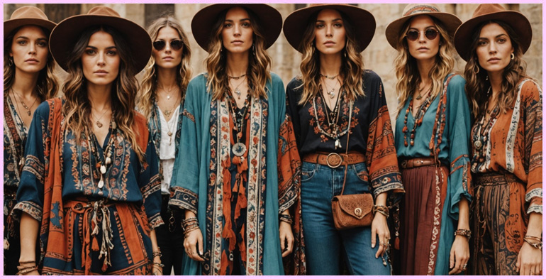 In the 1960s, the hippie movement embraced the Boho look. Their desire for a free life, without restrictive guidelines or labels, led them to contrast the capitalist West with an idealized East. This is why the style incorporated denim, the working-class fabric of the time, Native American-inspired pieces (fringed jackets, jewelry), and of course, items from India (this was the heyday of pilgrimages to India and Nepal).