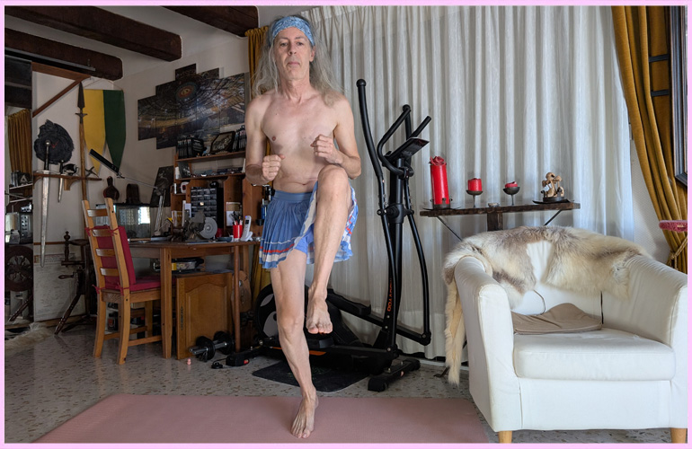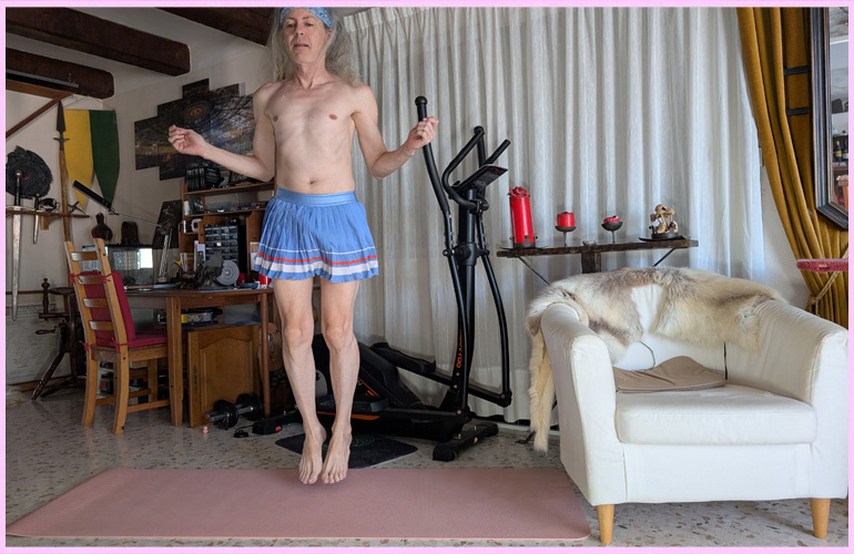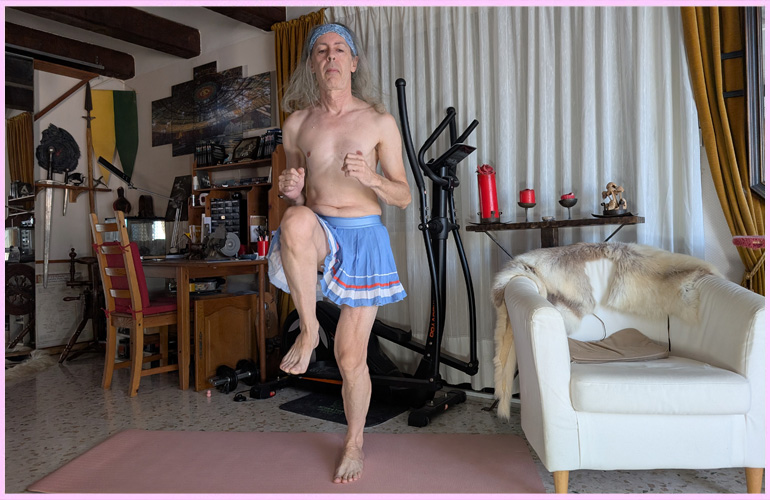 Debout, on saute d'une jambe sur l'autre en montant alternativement chaque genou. L'exercice peut se faire sans sauter si vos genoux sont fragiles.