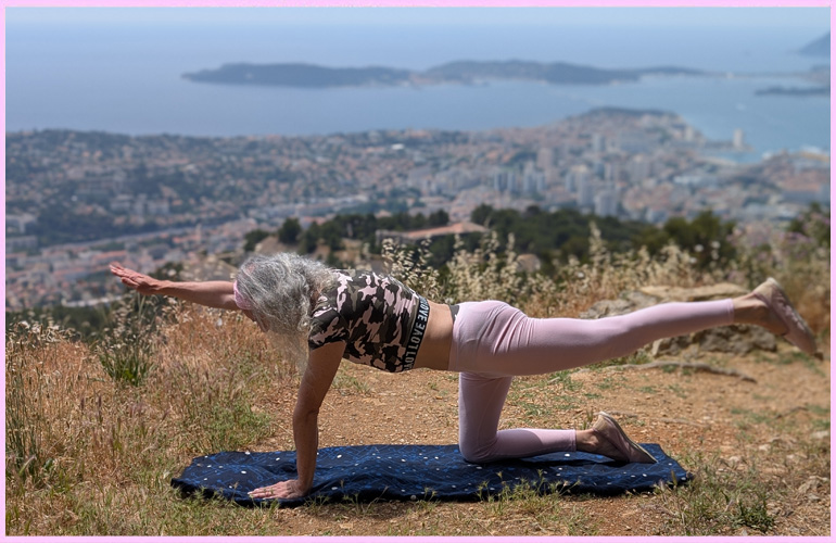 11:00-12:00 - As you inhale, bring your hands in front of your body, palms on the floor, then, contracting your abs, lift your left hand and right leg and hold for about 20 seconds. Repeat with the opposite limbs.