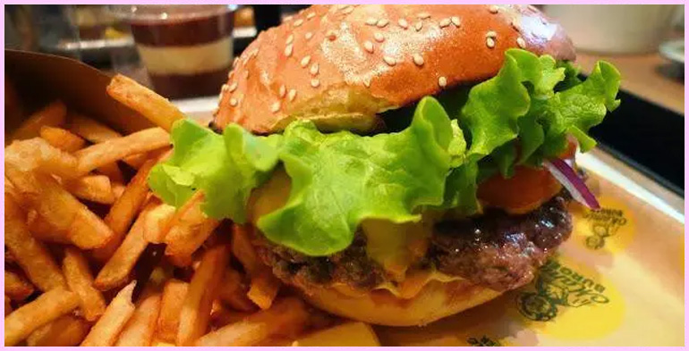 Bread, Ground steak, Sliced Cheddar, Tomato, Salad (Sugar lettuce or Lettuce), Fried onions, BBQ sauce
