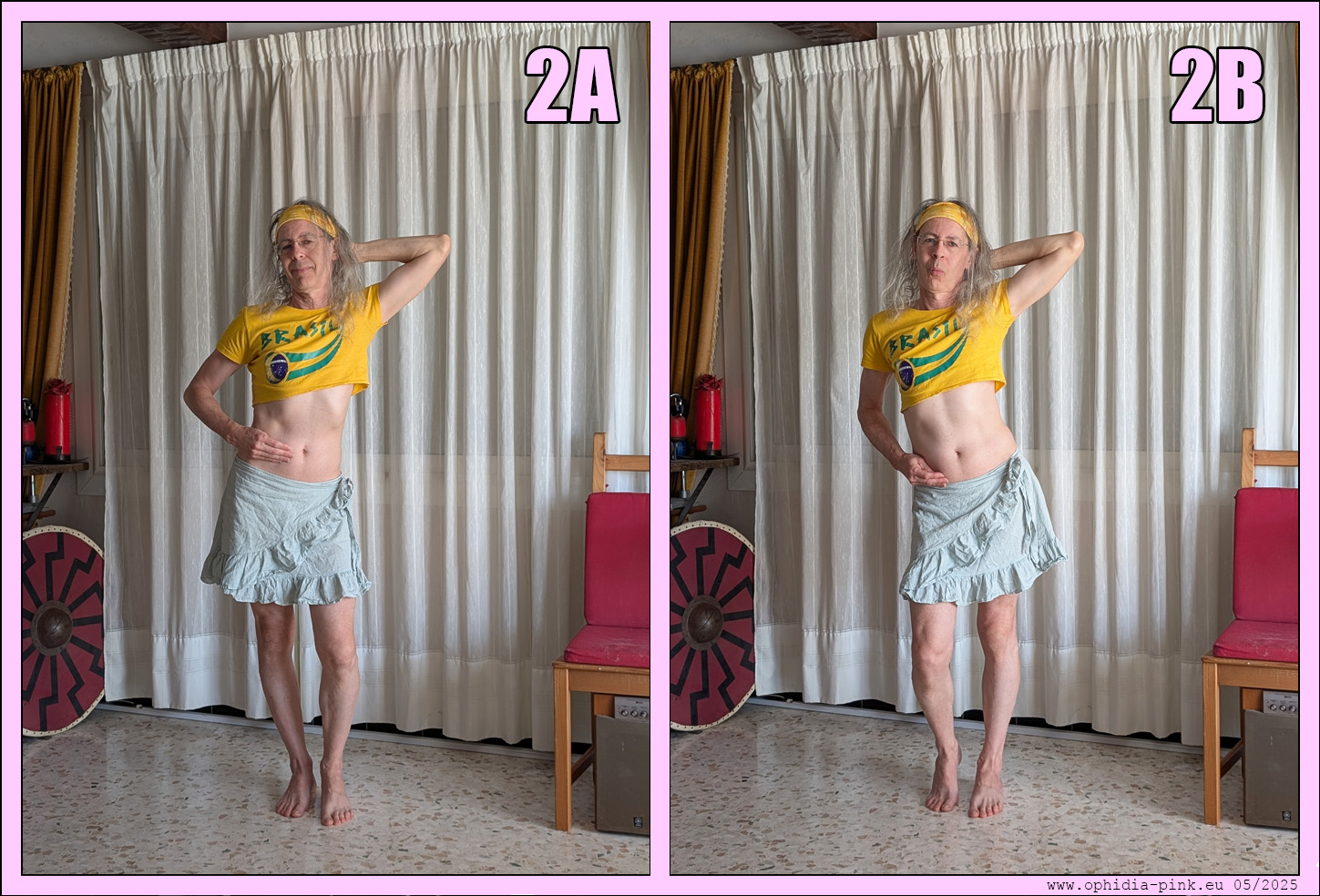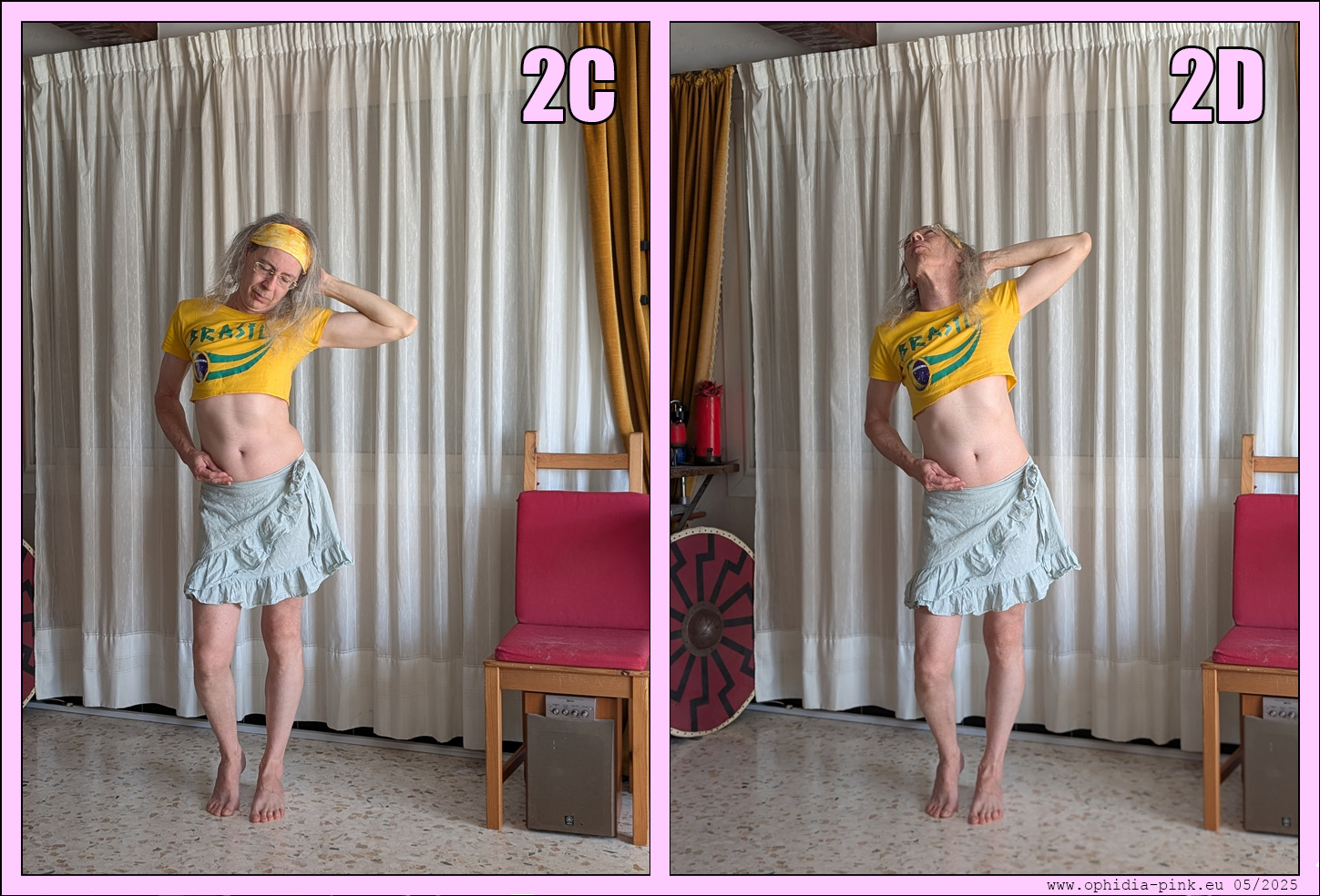 Ophidia va tenter d'apprendre un enchainement de mouvements sexy pour composer une danse érotique. Ça n'est pas gagné car Ophy n'est pas à franchement parler une danseuse ! On commencera par une suite de positions avec les explications pour passer d'une à l'autre puis viendront des videos...